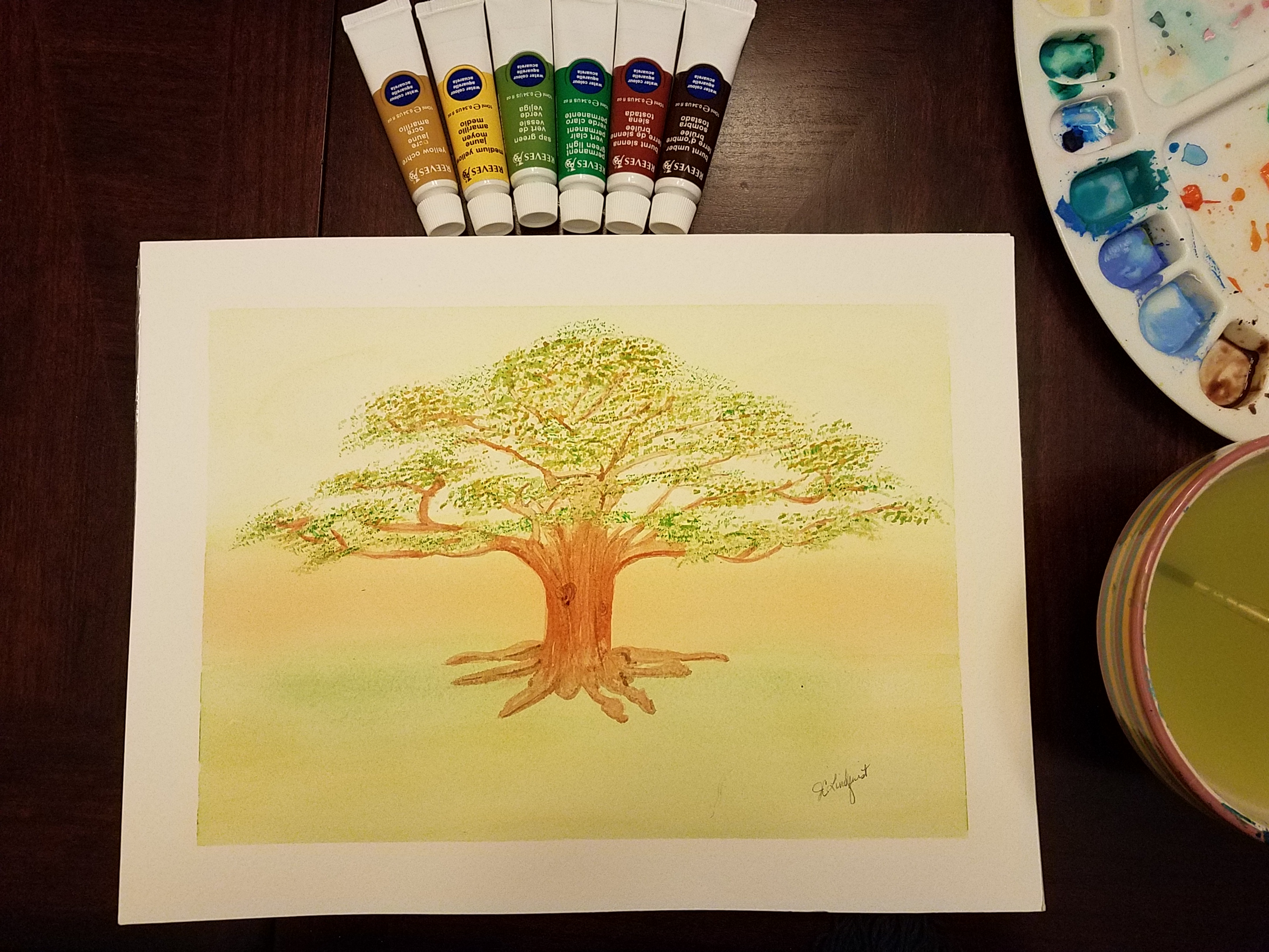 Tonight’s painting was one I started sketching out yesterday but when I went in search of the drawing, it was no where to be found. So, I had no choice but to use my imagination. I could add leaves for hours but I’m pretty tired. Have a good night all! Keep painting!