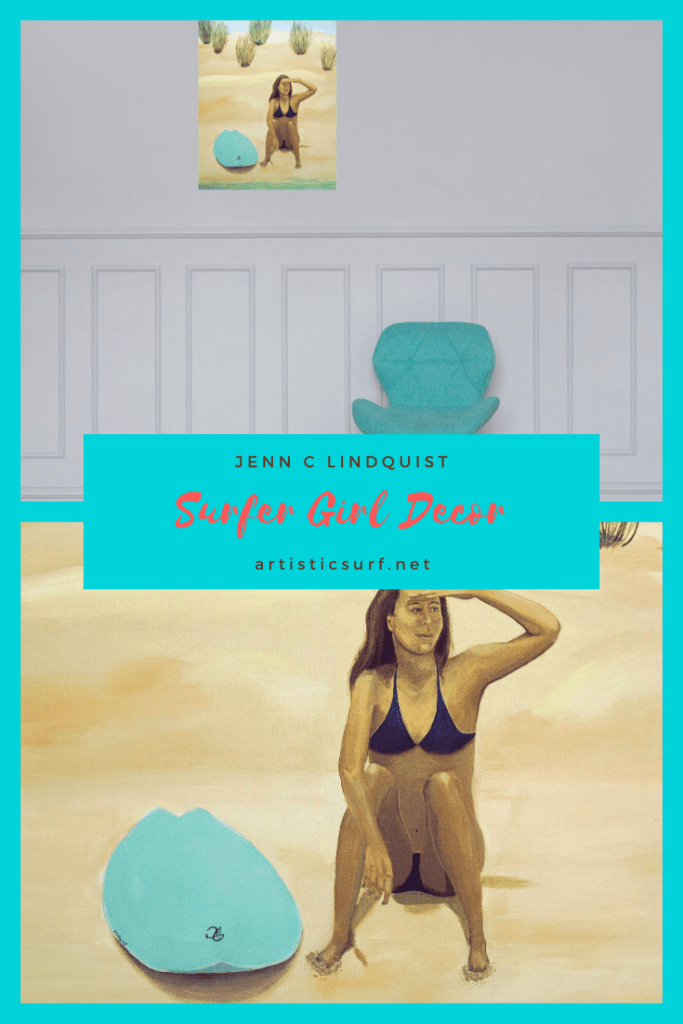 This beautiful original painting of a surfer girl sitting on the beach, watching the break will be a lovely addition of coastal decor to your beach house. Also, consider this as a gift for the surfer girl in your life.