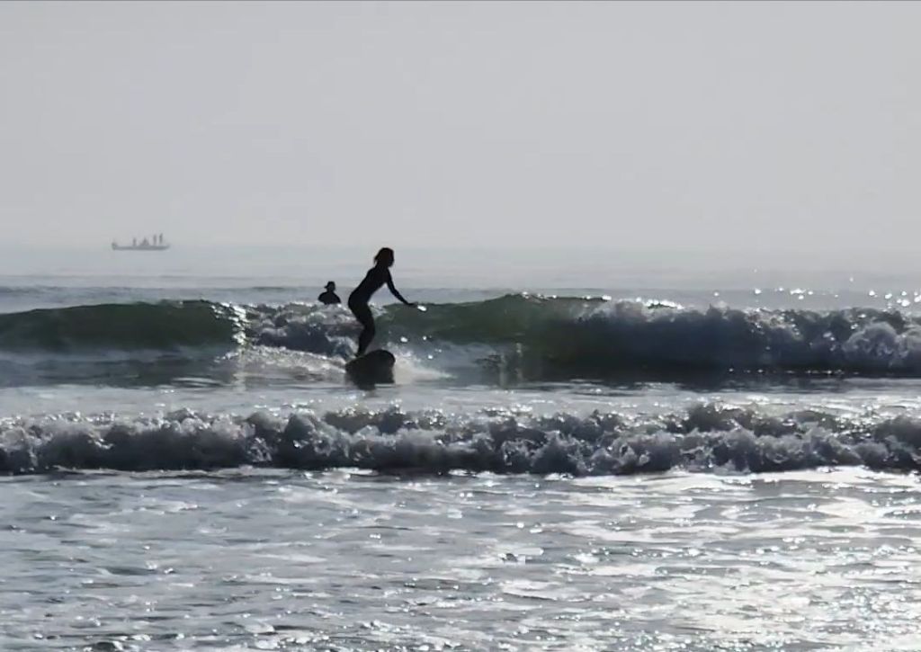 I took a few attempts at waves there and that’s where I caught the wave of the day. Although the waves were small, this one I could tell was coming in with nice form. I turned in the direction of the smaller side of the wave so that it would crash behind me and not in front of me. I was able to ride it down the line, which I’ve not done in quite a while.