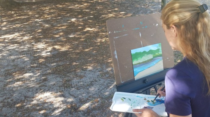 Our vacation was spent enjoying some of the natural beauty that Florida has to offer. We visited Jacksonville Beach, Payne's Prairie, Devil's Den and Rainbow River. We spent almost as much time biking, hiking, snorkeling and kayaking as we did resting. If not, it sure felt like we did. I'm still sore but it was … Continue reading Making Time to Paint on our Recent Camping Trip