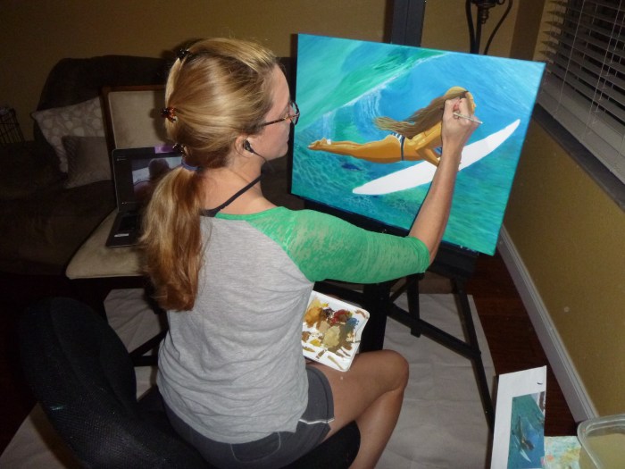 Lately, I've been getting the same question over and over again. Is that you in the painting. Although I'm not painting myself, I am painting someone who represents the idealized version of surfing. Hopefully, you can feel the isolation and peace under the water while viewing the duck diving surfer girls. It's a quick moment … Continue reading Is That You in the Painting?